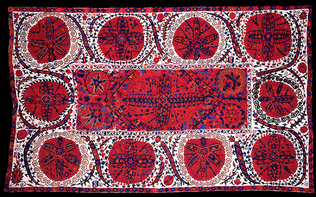 Hexagonal Medallion Bukhara beginning of the 19th century or earlier 161 x 264 cm (5ft 3in x 8ft 8in) silk embroidery, predominantly in basma technique, on a cotton foundation | |
