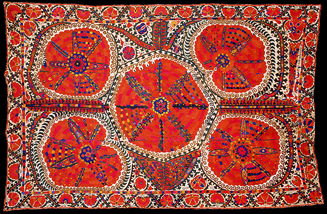 Five Medallions Bukhara probably 18th century 184 x 285 cm (6ft 1in x 9ft 4in) silk embroidery on a cotton foundation | |
