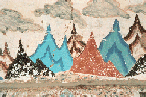 ...The programme of the west wall (pl. 42) is perhaps the most complex and diverse of all the Dunhuang caves. The central niche is fully 1 metre deep, 2 metres wide, and 2.6 metres high, but its apparent height and width are greatly increased by the lintel above, which extends on to the west slope of the ceiling, where monkeys play among the hills (pls 282, 283). This lintel is filled with scrolling half-palmettes and lotus blooms, alternately red and blue, inverted and right way up, each with a small figure representing a Bodhisattva newly reborn by transformation (pl. 211). Within this niche, the main image is seated with legs pendent (pl. 43). The Buddha's robe gives a glimpse of the fastening of his inner garment, and hangs over the throne and his legs in raised spiral folds which are consummately modelled. It ends in elegant points at the Buddha's left shoulder. The halo and aureole are wholly composed of up to six different kinds of flame borders, perhaps the most elaborate from the entire site. Similarly, the rows of adoring Bodhisattvas, slim and beautiful, with haloes all of different colours, show the highest level of skill (pl. 242). At the top of the niche, four apsarasas or heavenly beings exemplify this artistry; they are drawn with fine ink lines, colour shading of the contours, and fine white highlights, their graceful antics neatly filling the curved surface and directing attention back to the Buddha (see detail below)... | |